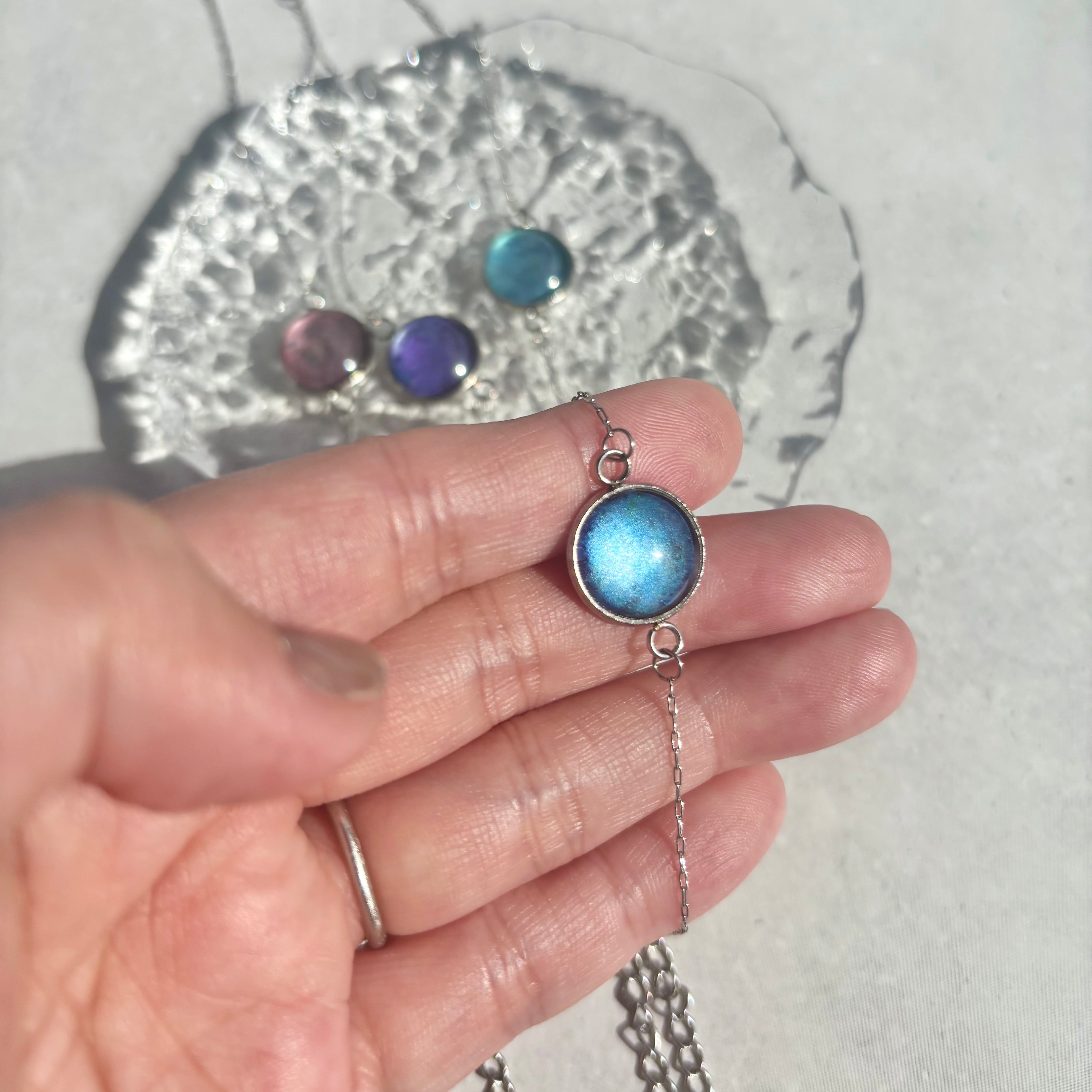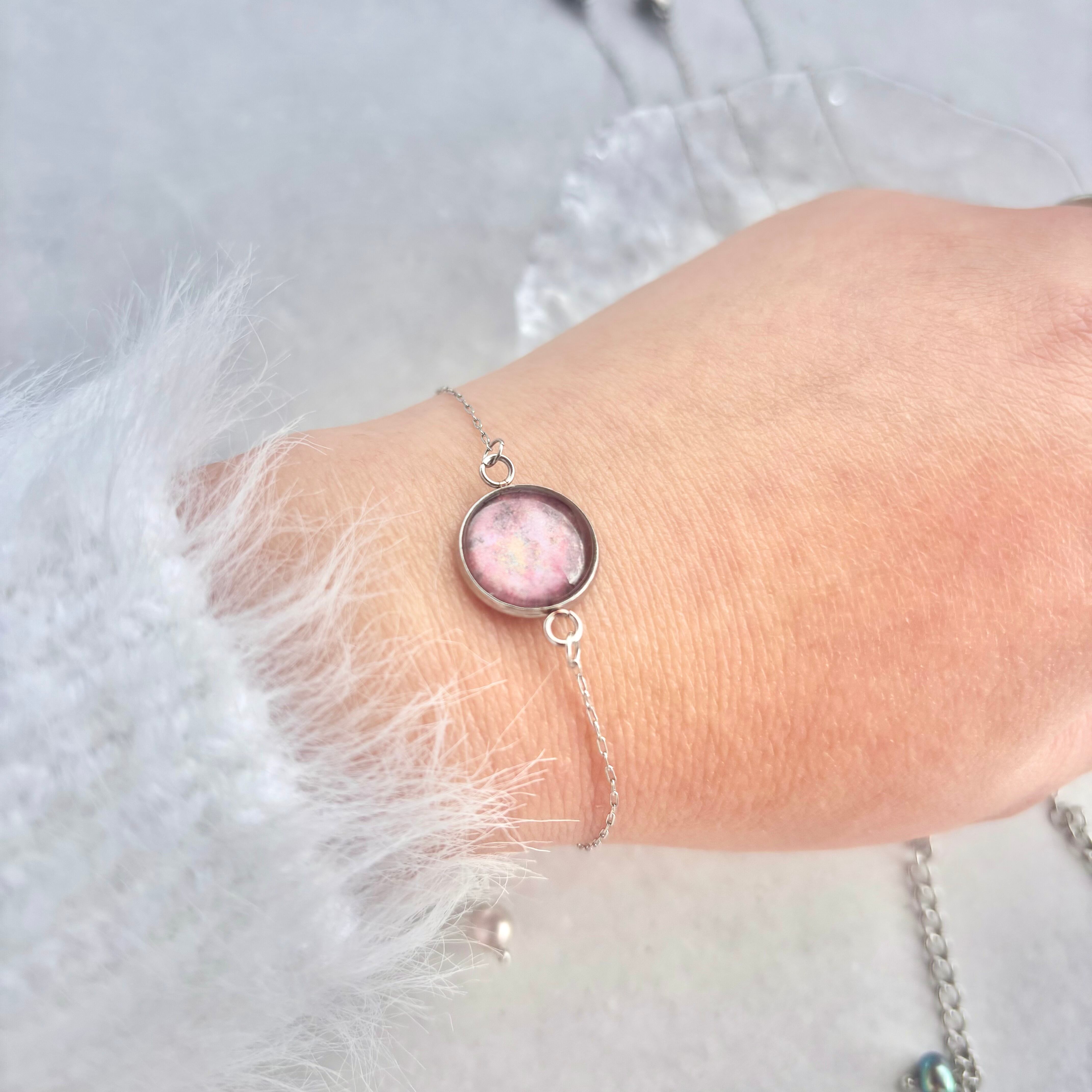 ガラスに水彩アートを施したトップのブレスレットです。