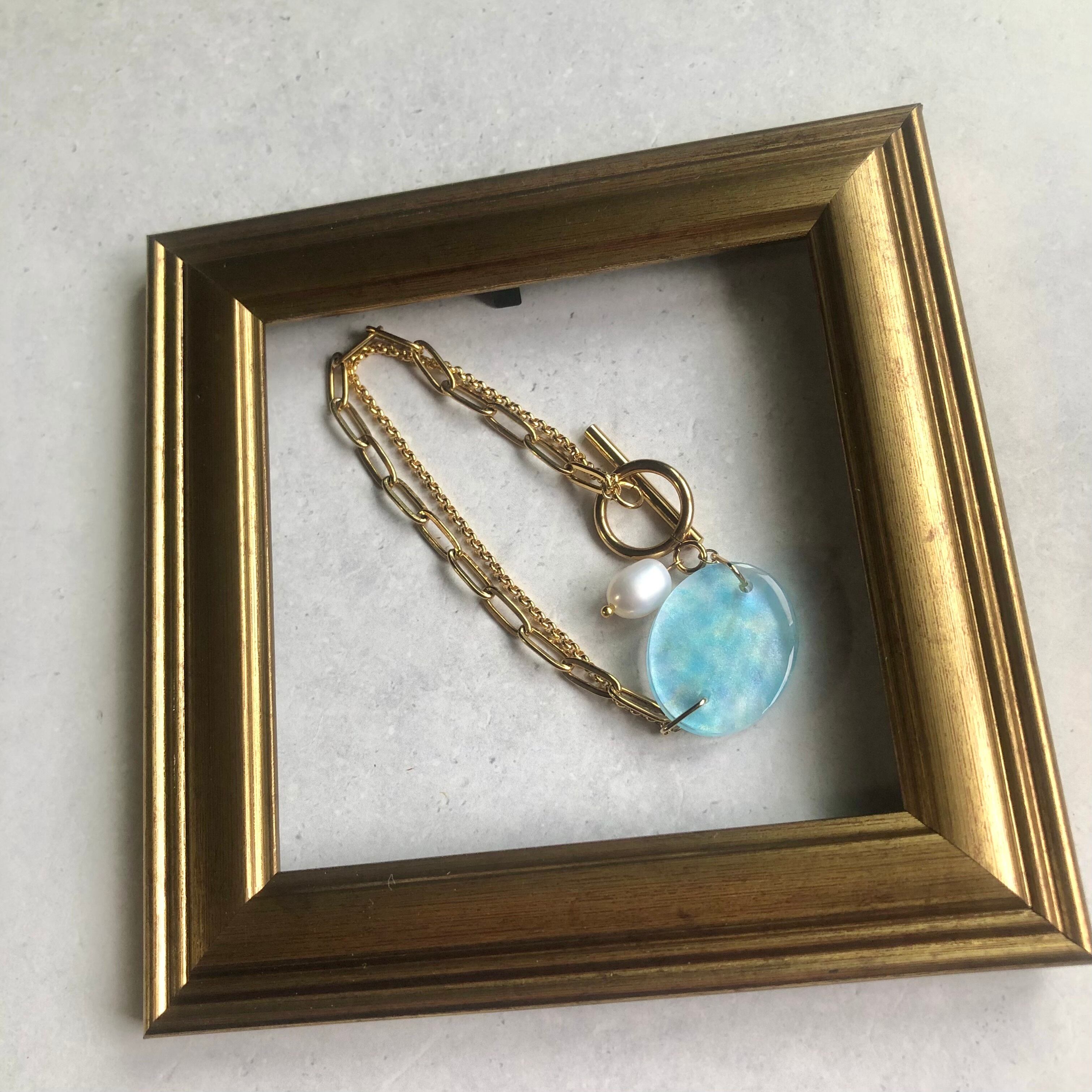 水彩アートを施したチャームを付けたチェーンブレスレットです。